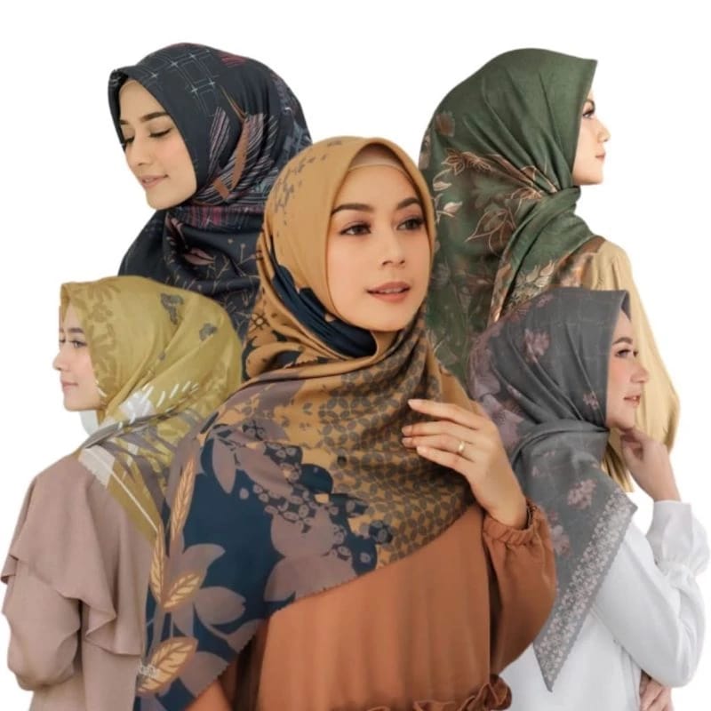 – Jilbab segi empat motif berukuran 110 cm x 110 cm